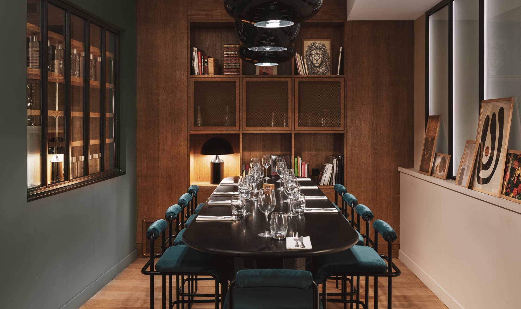 Quand la nuit enveloppe Paris, Le Dandy révèle toute sa sophistication : lumières tamisées, matières nobles et atmosphère enveloppante composent le décor de cette expérience pensée pour deux.