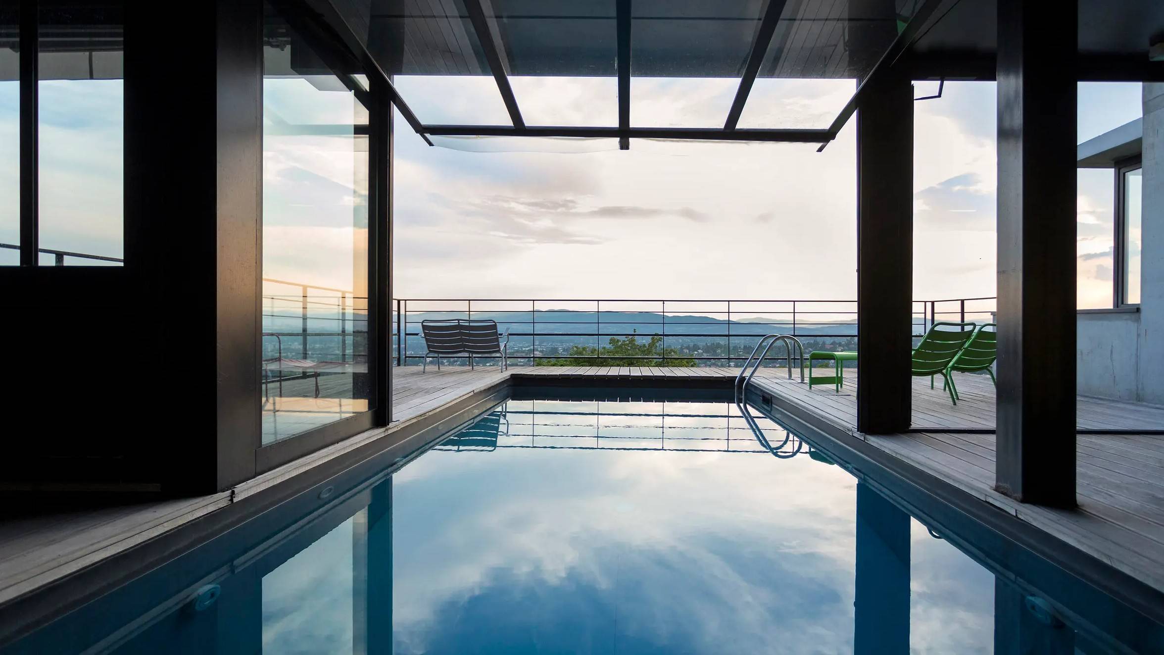 - Accès à l’espace bien-être (1h) — piscine chauffée intérieure-extérieure avec vue imprenable.